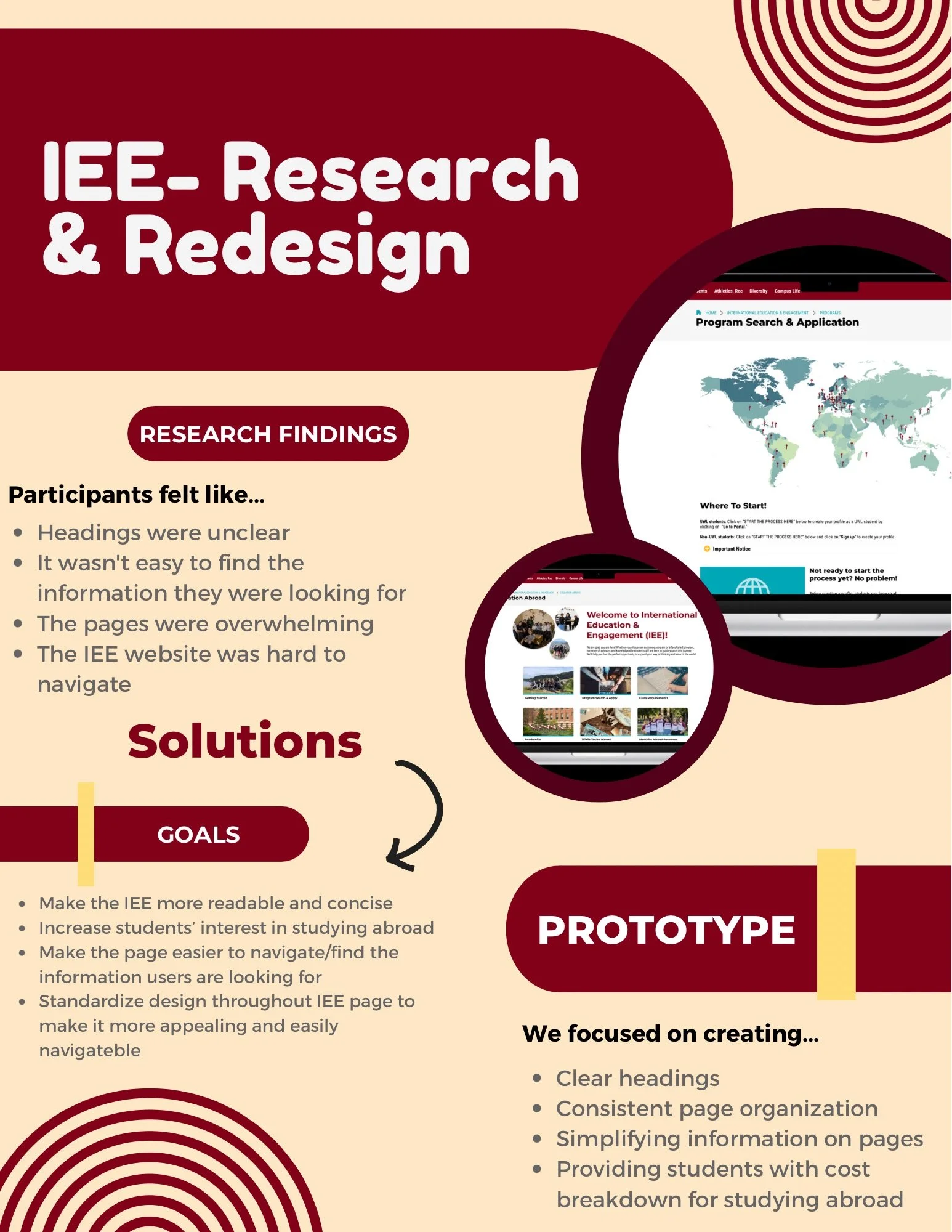 Across these interviews, a shared set of issues emerged. Users consistently described feeling overwhelmed by the amount of information presented on the International Education and Engagement (IEE) main page. The heavy content load created visual clutter, which often caused users to exit pages prematurely or overlook important information. Additionally, ambiguous page titles led to confusion about where certain content was located, resulting in inefficient navigation.